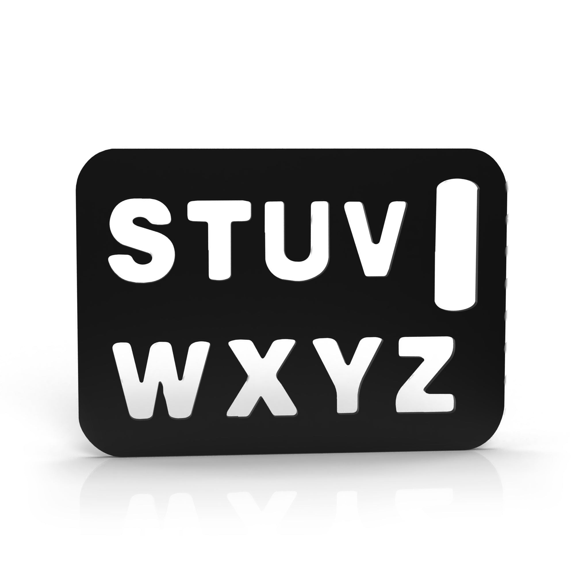 - Stencil-style lettering allows the communicator to point through each letter, supporting clearer intent and visual discrimination